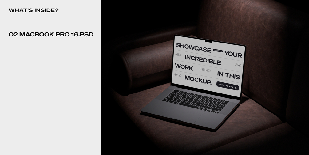 Vol 20 features a variety of dark-themed mockups of Macbook Pro in both 14 and 16 inch.