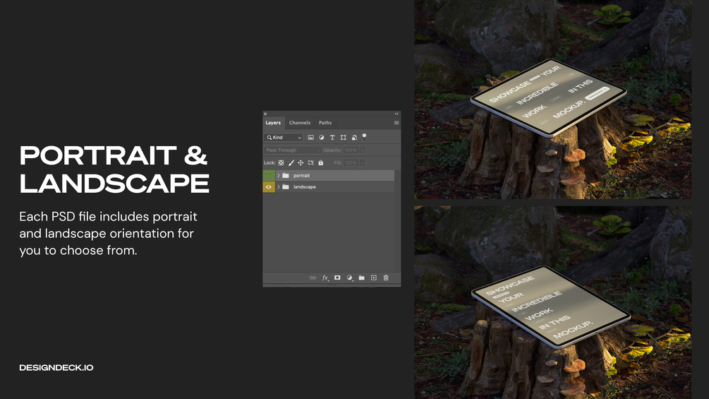 - 1 PSD File sized at 6000 × 4500px with 72dpi with portrait and landscape orientation.