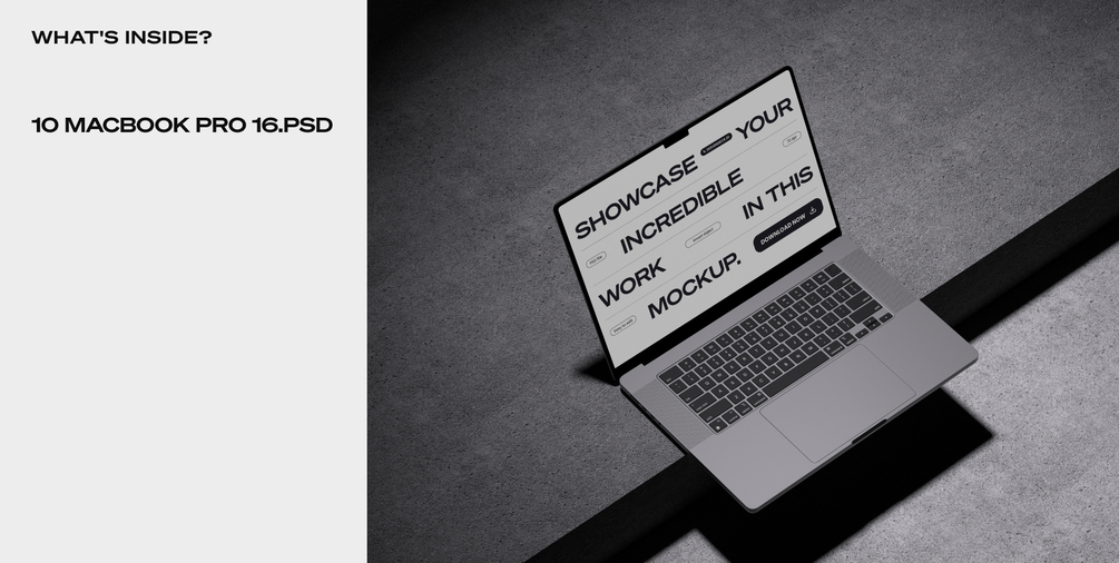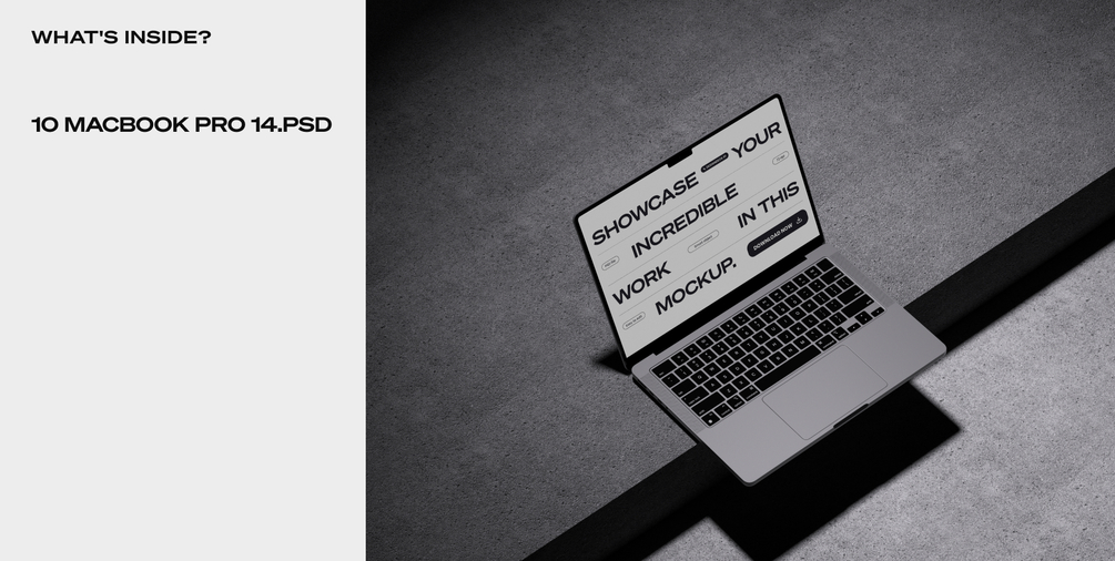 Vol 20 features a variety of dark-themed mockups of Macbook Pro in both 14 and 16 inch.