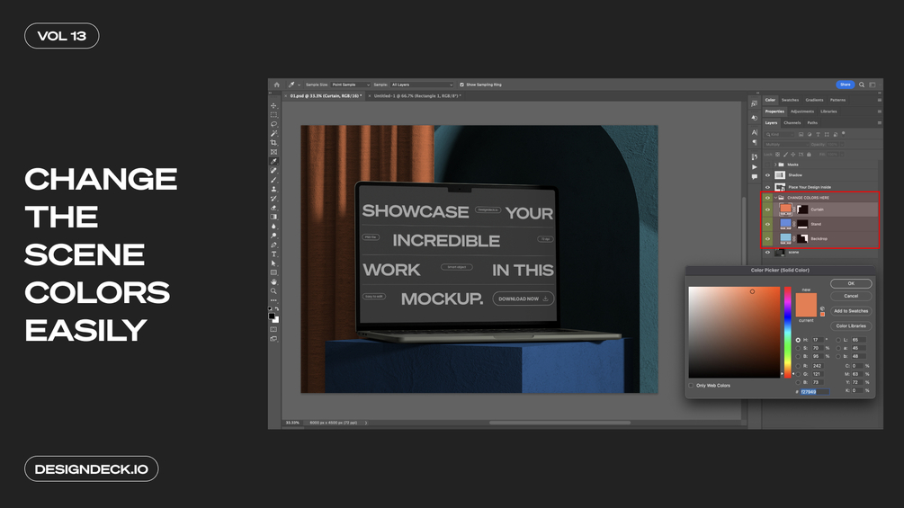 This mockup comes with the option to change the scene colors to your heart's content. Check the second image to see how.